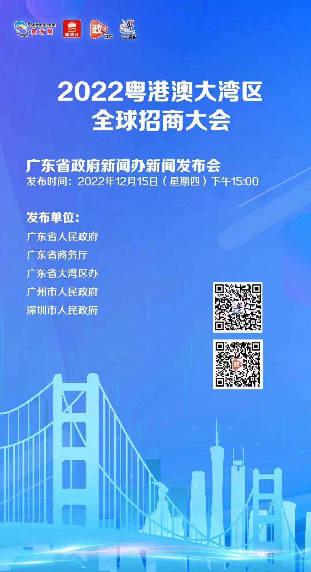 12月15日下午3时,2022粤港澳大湾区全球招商大会365报价官网_365bet足球即时比分网_365平台被黑发布会在广东大厦举行。