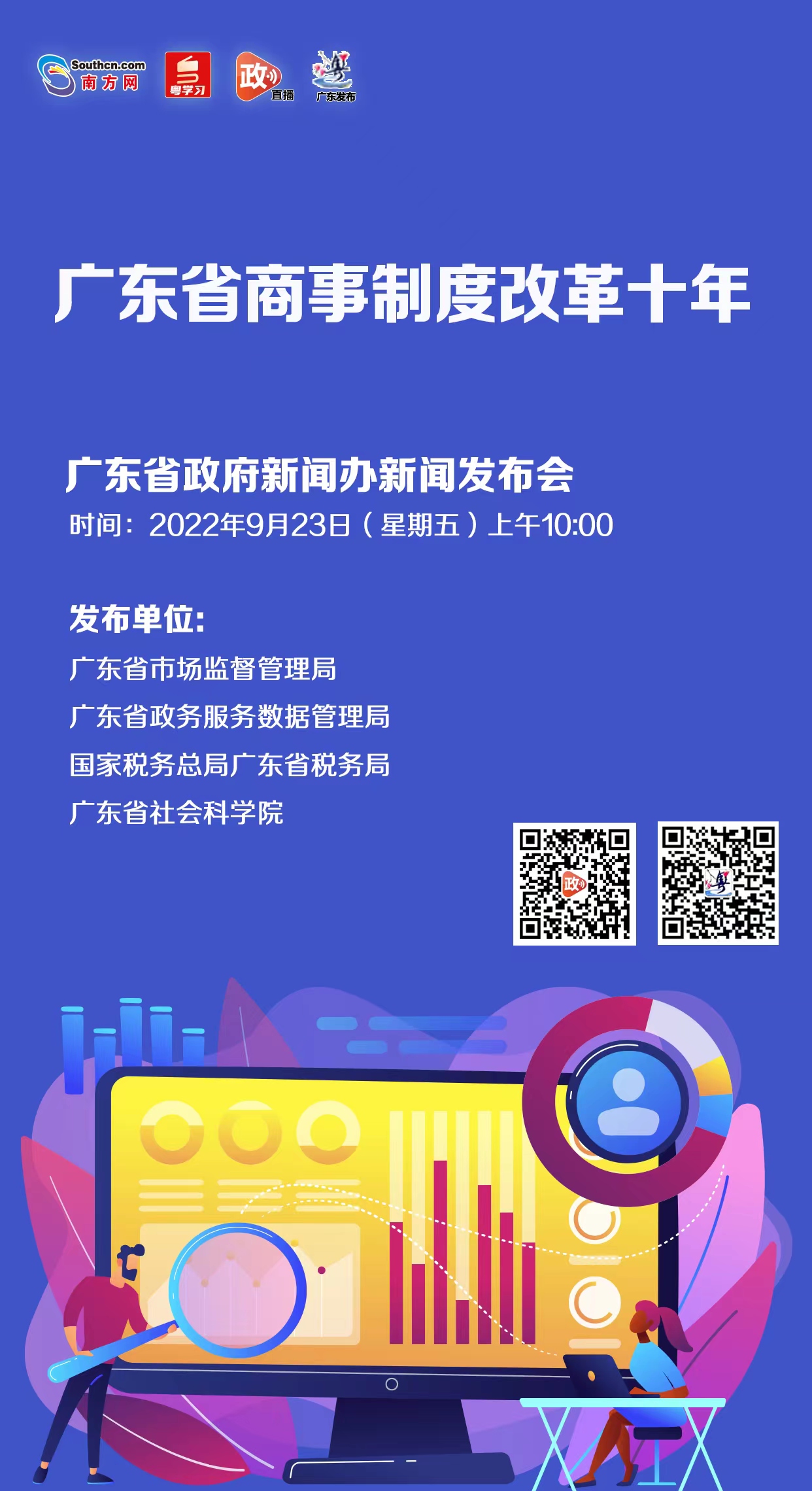 广东省人民政府365报价官网_365bet足球即时比分网_365平台被黑办公室将于 2022年9月23日(星期五)上午10时在广东大厦三楼多功能厅,举行“广东省商事制度改革十年”365报价官网_365bet足球即时比分网_365平台被黑发布会,由省市场监管局主要负责同志作主发布,省政务服务数据管理局、省税务局、省社科院相关负责同志出席发布会并回答记者提问。