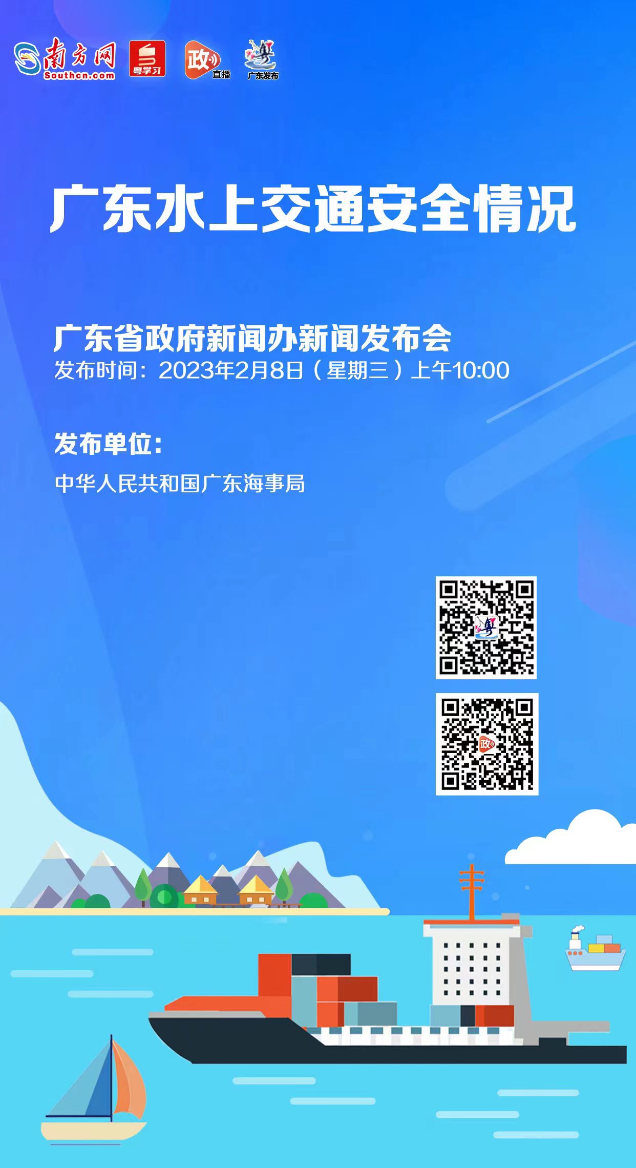 广东省人民政府365报价官网_365bet足球即时比分网_365平台被黑办公室于2023年2月8日(星期三)上午10时,举行广东水上交通安全情况365报价官网_365bet足球即时比分网_365平台被黑发布会,由广东海事局副局长郭伟斌作主发布,广东海事局相关处室负责人出席发布会并回答记者提问。