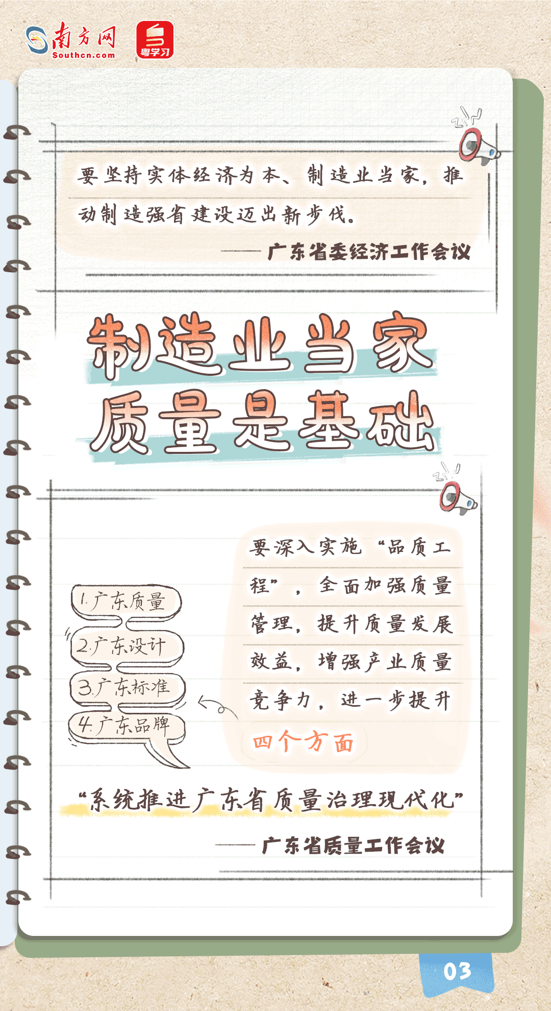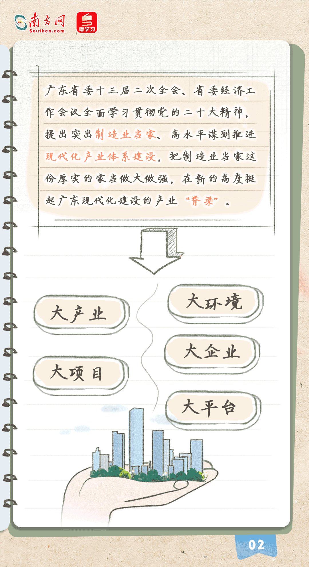 广东省委十三届二次全会、省委经济工作会议也提出突出制造业当家、高水平谋划推进现代化产业体系建设,把制造业当家这份厚实的家当做大做强,在新的高度挺起广东现代化建设的产业“脊梁”。