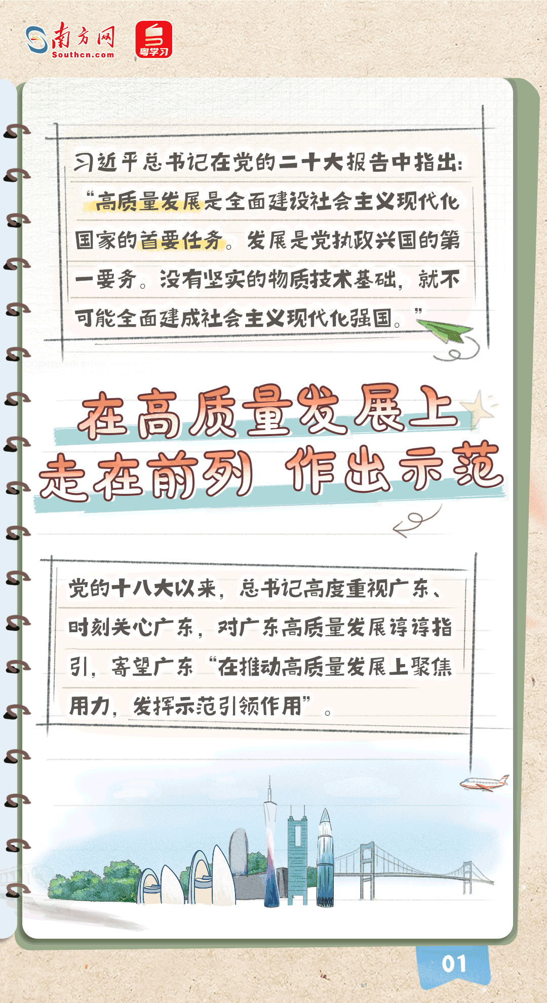 习近平总书记在党的二十大报告中指出:“高质量发展是全面建设社会主义现代化国家的首要任务。”党的十八大以来,总书记高度重视广东、时刻关心广东,对广东高质量发展谆谆指引,寄望广东“在推动高质量发展上聚焦用力,发挥示范引领作用”。
